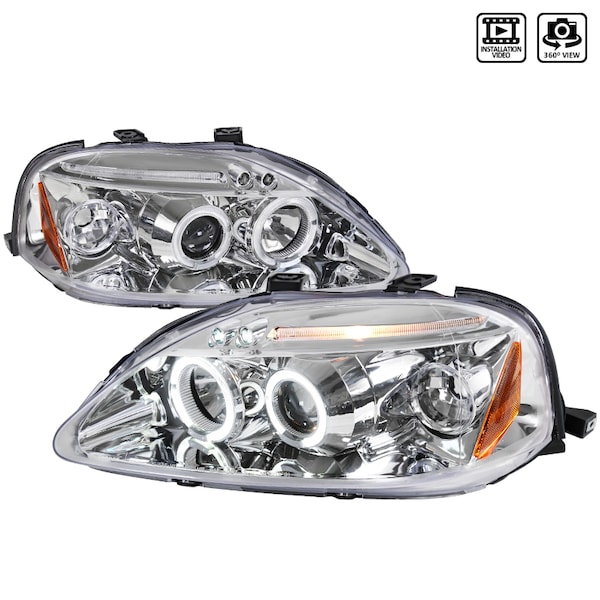 99-00 Honda Civic Halo LED Projector Chrome