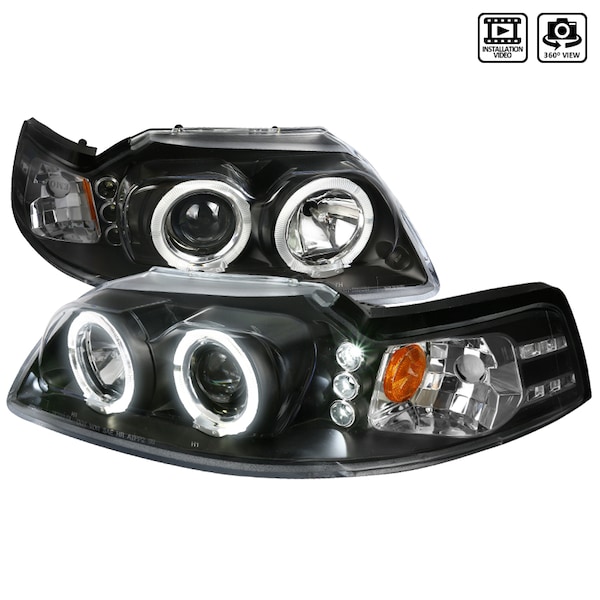 99-04 Ford Mustang Halo LED Projector Black, 2LHP-MST99JM-TM