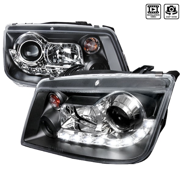 99-04 Volkswagen Jetta R8 Style Halo LED Projector Black