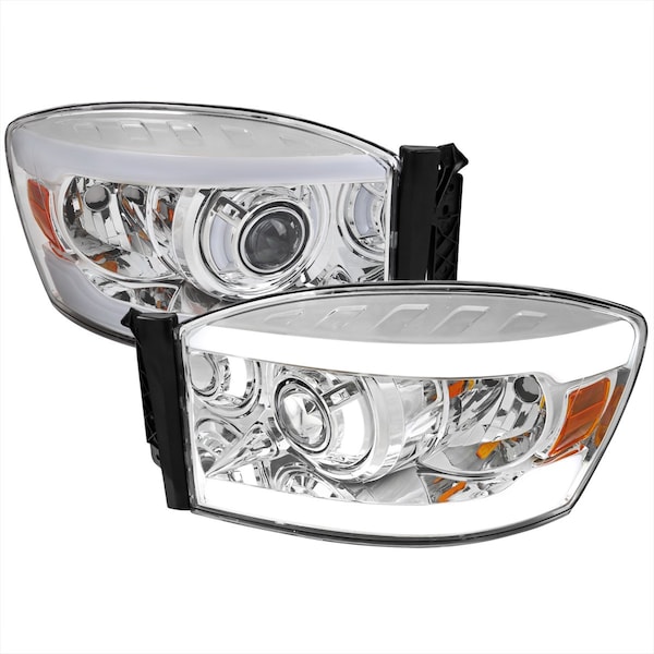 PROJECTOR HEADLIGHTS WITH LED BAR CHROME HOUSING CLEAR LENS, 2PK (Discontinued)