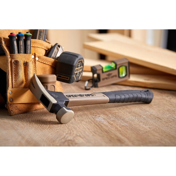 An indisputable choice for electricians, woodworkers, remodelers, and contractors, this Spec Ops 20 oz. Smooth Face Rip Claw Fiberglass Hammer is lightweight with optimum vibration reduction; the handle is constructed with fiberglass and a camo-textured, MOA grip that absorbs shock and lessens sting. With a lighter, high-carbon steel head and a ballistically balanced design, this hammer provides rapid, sniper-controlled swings and hard-hitting power for on-target nail driving. To help you work safer and more precisely, this hammer features a lanyard hole for compatibility with SRS Safety Retention Systems, a smooth-face for damage-free nail driving, and a curved claw for ultimate leverage during nail removal. And with a guarantee to deliver a lifetime of mission capability on the worlds toughest job sites, this hammer is forged with heat-treated, high carbon steel and drop tested at 100 feet to surpass MIL-SPEC standard. We support our nations heroes by donating 3% of proceeds to veteran and first responder causes.