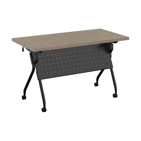 Stylish, lightweight and easy to use, the Transform-2 Flip and Nest Table provides a versatile solution to any training room and classroom environment. Contemporary base offers straight-on nesting in flip-top application that saves room in tight spaces. Each additional table takes up to 7-1/2in in the flipped position. Its lightweight material, casters and one-handed activation allow anyone to flip and move tables with ease. Flip latch allows one-handed activation on both sides. Perforated steel modesty panel extends 14in below the tabletop and is an integral part of the base, providing privacy and an elegant look at the same time. Continuous, heavy-duty beam prevents top from sagging. Stretcher bar spans between the legs and provides additional stability. Tabletop features high-pressure, patterned laminate. Cord management is easy with the J-shape wire manager and table-leg wire channel. Locking, 2-1/4in dual-wheel black casters on the silver base hold up to 112 lb.