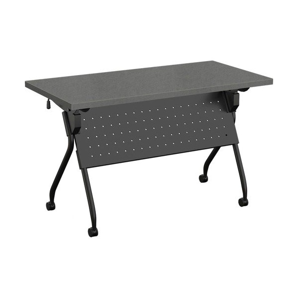 Stylish, lightweight and easy to use, the Transform-2 Flip and Nest Table provides a versatile solution to any training room and classroom environment. Contemporary base offers straight-on nesting in flip-top application that saves room in tight spaces. Each additional table takes up to 7-1/2in in the flipped position. Its lightweight material, casters and one-handed activation allow anyone to flip and move tables with ease. Flip latch allows one-handed activation on both sides. Perforated steel modesty panel extends 14in below the tabletop and is an integral part of the base, providing privacy and an elegant look at the same time. Continuous, heavy-duty beam prevents top from sagging. Stretcher bar spans between the legs and provides additional stability. Tabletop features high-pressure, patterned laminate. Cord management is easy with the J-shape wire manager and table-leg wire channel. Locking, 2-1/4in dual-wheel black casters on the silver base hold up to 112 lb.