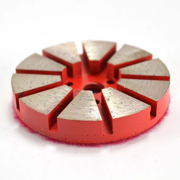 The Diamond Floor Polishing Pads are designed for Concrete grinding and polishing. They are nylon backed and can fit on most floor machines easily. Metal bond diamond polishing pad are designed to remove coatings on concrete floor to prepare the floor for polishing. The concrete floor grinding pad is a ten segmented floor tool that is made of metal, more aggressive and sharp.