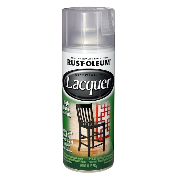 Rust-Oleum Specialty Lacquer Spray adds an ultra-hard, factory-like finish to furniture and accessories. Apply to wood, metal, plaster, masonry or unglazed ceramic. Hardens to high luster.