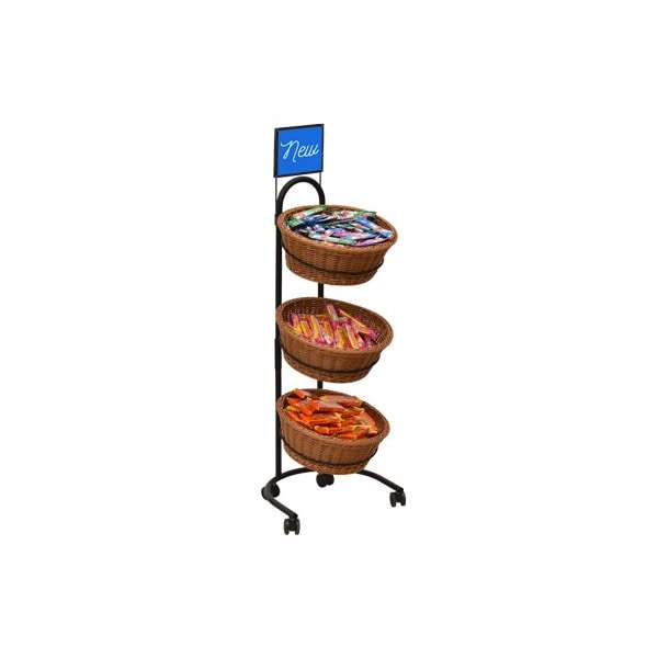 3 Tier Mobile Merchandiser With Round Plastic Wicker Baskets