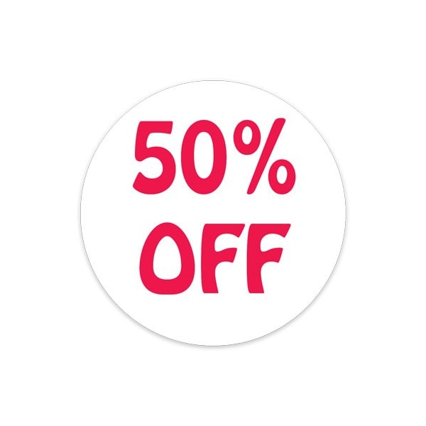 50 Percent Off Preprinted Retail Labels, Circle