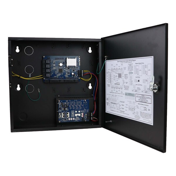 Expandable up to 4 doors, power package; Embedded Linux operating system; Expandable up to 4 doors (when used with A2M board); 2 Readers (In/Out); 2 Relays (Lock/Aux); 3 Inputs (REX, DPS, Aux) Global; UL listed - 294 Series 7; Lock Power on model A2E4P