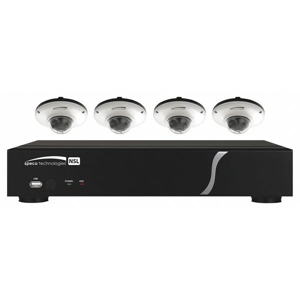 Network Video Recorder Kit, Camera Diameter 4 13/16 in, Camera Height 2 11/64 in, Camera Resolution 1920 x 1080, Includes (4) Dome Cameras, NVR, Number of Channels 8