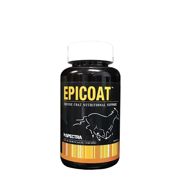 Epicoat is a concentrated, plant-based source of Omega 3 fatty acids for horses. It contains GLO-MEGA, a proprietary combination of vitamin E and chia seed oil, with peroxidation blockers to protect against rapid oxidation and rancidity.Directions:Shake well before use. Mix 6ml daily into feed or feed 6ml daily by mouth.Expect Results:Within 7 days.