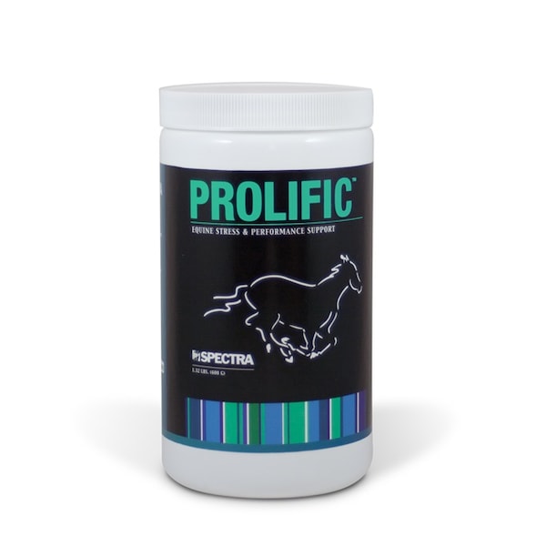 Prolific is a nutrient-dense spirulina tablet with a vast array of benefits for horses, including nutritional support for stress and performance. Spirulina is a blue/green algae known as one of the most concentrated natural sources of nutrition. It contains all essential amino acids, is rich in chlorophyll, beta-carotene and other natural phytochemicals and is the only green food rich in the essential gamma-linolenic fatty acid.Features and Benefits:• Contains high levels of Phytonutrients such as carotenoids, phycocyanin, chlorophyll and antioxidants.• Highest source for phytopigments in a bio-available form (>18,000 mg/100g)• Highest, most digestible source of "complete" protein.• Higher key nutrient levels than other spirulina products.• Elevates activity of antioxidant enzymes; superoxide dismutase (>390,000 mg/100g), catalase, gluthione peroxidase and glutathione reductase significantly, thus reducing stress.• Stimulates production of interferon and IL-2, which activates the immune system.• High ORAC score (24,400 units/100g)• Good source of the fatty acid gamma-linolenic acid (GLA)Function Facts:• Oxidative Stress Support - Phycocyanin, Superoxide dismutase, Beta Carotene, Chlorophyll, Xanthophylls, Zeaxanthin• Immunity - Polysaccharides, Phycocyanin• Cardiovascular Health - Phycocyanin• Anti-inflammatory - Phycocyanin, Chlorophyll, Gamma-linolenic acid (GLA), Beta Carotene, Zeaxanthin• Improved Red and White Blood Cell Counts - Polysaccharides, Phycocyanin• Healthy Coat - Gamma-linolenic acid (GLA)