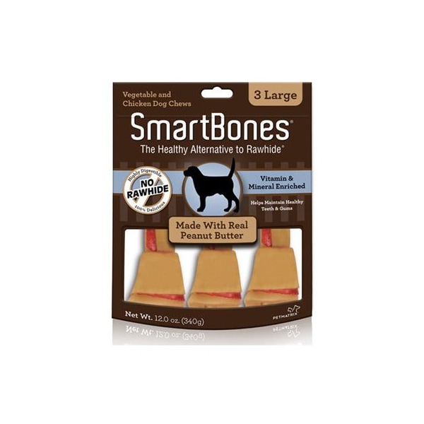 SmartBones 3-PK Large Peanut Butter Dog Chews are a healthy alternative to rawhide vegetable & chicken dog chews. They are made with real peanut butter and help maintain healthy teeth & gums. They are vitamin & mineral enriched.