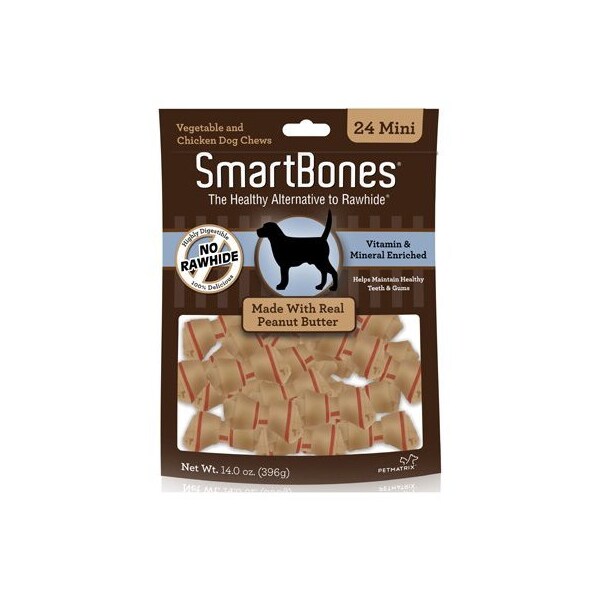 SmartBones 24 Pack Mini Peanut Butter Dog Chew Healthy Alternative To Rawhide Vegetable & Chicken Dog Chews Made With Real Peanut Butter Helps Maintain Healthy Teeth & Gums Vitamin & Mineral Enriched.
