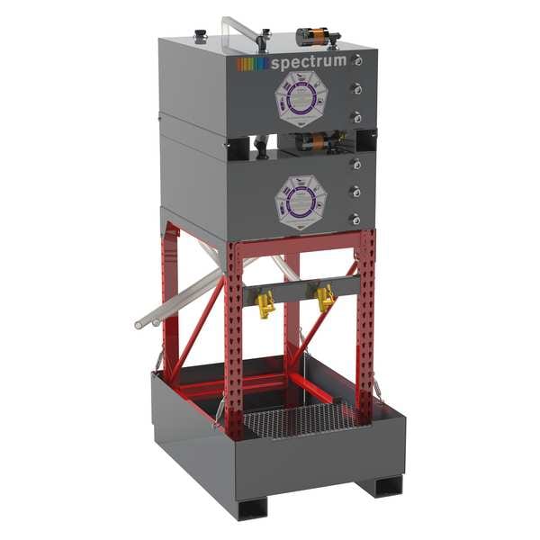 Bulk Oil Storage System, Number of Tanks 2, Tank Material Steel, Tank Capacity 65 gal, Tap Type Gravity Fed, Number of Pumps Not Applicable, Powder Coated Steel Frame Material, Frame Finish Powder Coated, Height 88 in, Width 36 in, Depth 46 in, Features Expandable System, Heavy Gauge Racking, Self-Closing Valves, Includes (2) Desiccant Breathers, 1-1/4 in ID PVC Hose, 73 gal Spill Containment