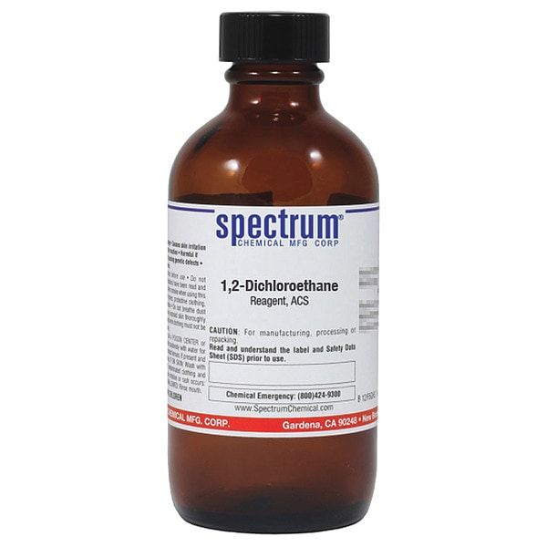 1,2-Dichloroethane, Concentration Not Applicable, CAS Number 107-06-2, Molecular Weight 98.96, Chemical Formula C2H4Cl2, Chemical Container Material Amber Glass, Chemical Container Type Bottle, Chemical Grade ACS, Chemical Container Size 100 mL, Chemical Family Type Solvent, Shelf Life 24 mo, Shipping Restrictions UN1184, Ethylene Dichloride, 3 (6.1), PG II, Standards Not Applicable, Special Information Not Applicable