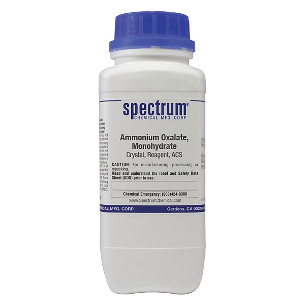 Ammonium Oxalate, Concentration Not Applicable, CAS Number 6009-70-7, Molecular Weight 142.11, Chemical Formula C2H8O4N2�H2O, Chemical Container Material Plastic, Chemical Container Type Bottle, Chemical Grade ACS, Chemical Container Size 500 g, Chemical Family Type Reagent, Shelf Life 24 mo, Shipping Restrictions Chemical Not Regulated For Transport, Standards Not Applicable, Special Information Not Applicable