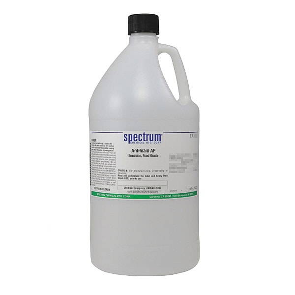 Antifoam AF, Concentration Not Applicable, CAS Number 25322-68-3, 556-67-2, 63148-62-9, 67701-33-1, 67762-90-7, 7732-18-5, 9004-99-3, Molecular Weight 18.02 F.W; 296.62 F.W, Chemical Formula H2O; [C2H6SiO]n; HO(CH2CH2O)nOCC17H35; H(OCH2CH2)nOH; C8H24O4Si4, Chemical Container Material Plastic, Chemical Container Type Jug, Chemical Grade Food Grade, Chemical Container Size 4 L, Chemical Family Type Reagent, Shelf Life 36 mo, Shipping Restrictions Chemical Not Regulated For Transport