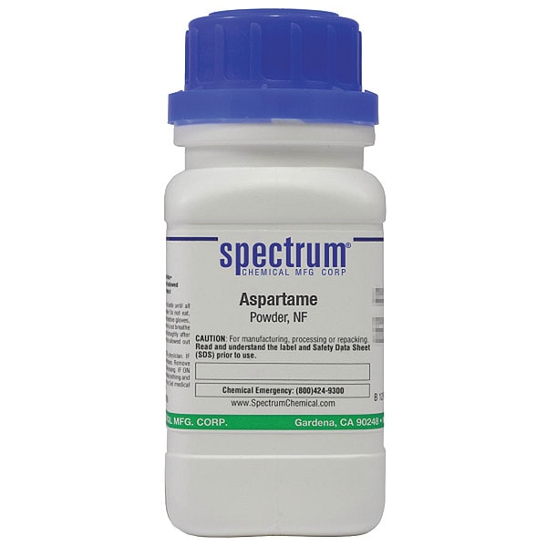 Aspartame, Powder, NF, CAS Number 22839-47-0, Molecular Weight 294.31, Chemical Formula C14H18N2O5, Chemical Container Material Plastic, Chemical Container Type Bottle, Chemical Grade NF, Chemical Container Size 25 g, Chemical Family Type Analytical Reagents, Shelf Life 24 mo, Shipping Restrictions Chemical Not Regulated For Transport