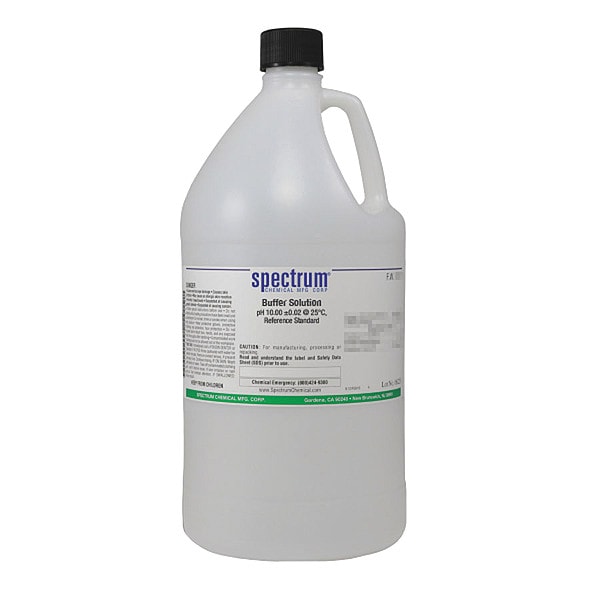Buffer - pH 10.00, Concentration pH 10.00 +/-002 @ 25 Degrees C, CAS Number 1303-96-4, 1310-73-2, 7732-18-5, Molecular Weight 18.02 F.W; 381.37 F.W; 40.00 F.W, Chemical Formula H2O; Na2B4O7�10H2O; NaOH, Chemical Container Material Plastic, Chemical Container Type Jug, Chemical Grade Lab, Chemical Container Size 4 L, Chemical Family Type Buffer, Shelf Life 12 mo, Shipping Restrictions Chemical Not Regulated For Transport, Standards Not Applicable, Special Information Not Applicable