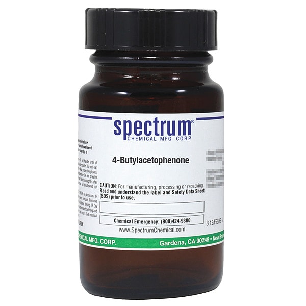 4'-Butylacetophenone, Concentration 100 Percent, CAS Number 37920-25-5, Molecular Weight 176.26, Chemical Formula C12H16O, Chemical Container Material Amber Glass, Chemical Container Type Bottle, Chemical Grade Reagent, Chemical Container Size 25 g, Chemical Family Type Acids, Shelf Life 24 mo
