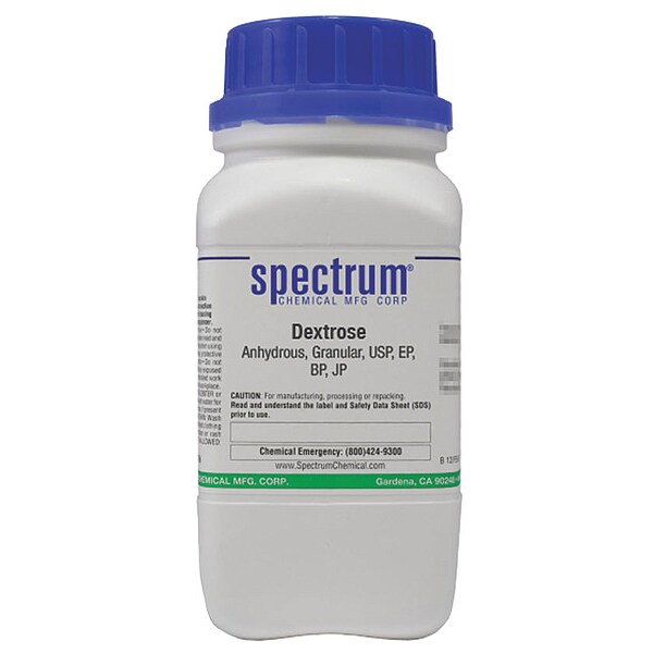Dextrose - Anhydrous, Concentration Not Applicable, CAS Number 50-99-7, Molecular Weight 180.16, Chemical Formula C6H12O6, Chemical Container Material Plastic, Chemical Container Type Bottle, Chemical Grade BP, EP, JP, USP, Chemical Container Size 500 g, Chemical Family Type Reagent, Shelf Life 48 mo, Shipping Restrictions Chemical Not Regulated For Transport, Standards Not Applicable, Special Information Not Applicable
