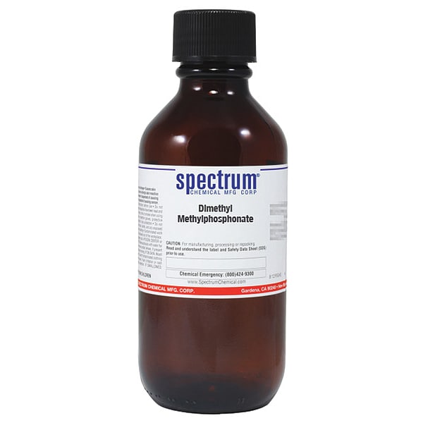 Dimethyl Methylphosphonate, Concentration 100 Percent, CAS Number 756-79-6, Molecular Weight 124.08, Chemical Formula C3H9O3P, Chemical Container Material Amber Glass, Chemical Container Type Bottle, Chemical Grade Reagent, Chemical Container Size 500 g, Chemical Family Type Bases, Shelf Life 24 mo