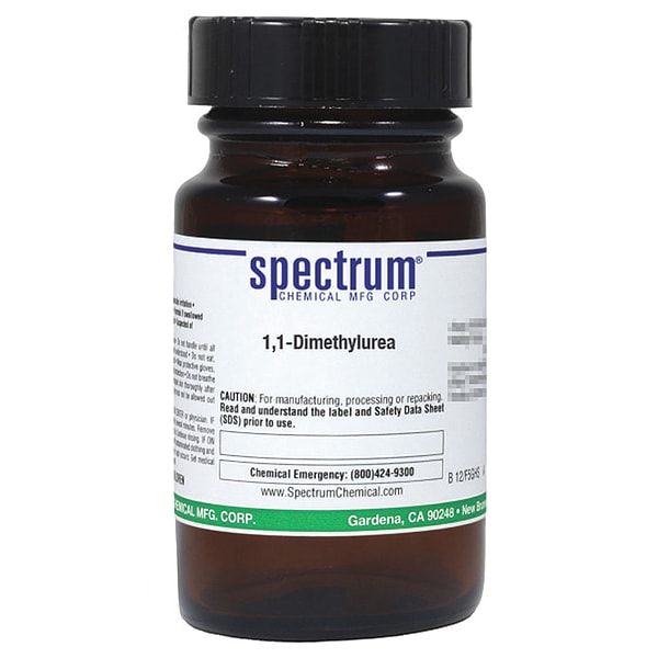 1,1-Dimethylurea, Concentration 100 Percent, CAS Number 598-94-7, Molecular Weight 88.11, Chemical Formula C3H8N2O, Chemical Container Material Amber Glass, Chemical Container Type Bottle, Chemical Grade Reagent, Chemical Container Size 25 g, Chemical Family Type Bases, Shelf Life 24 mo