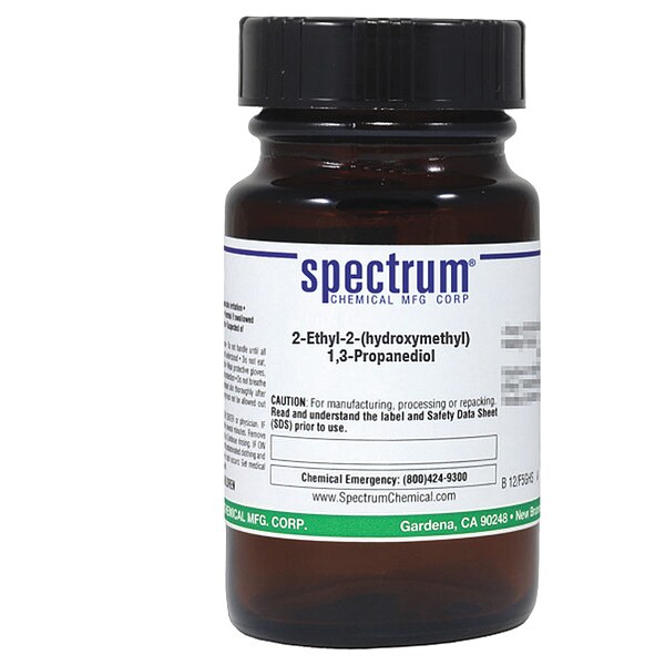 2-Ethyl-2-(Hydroxymethyl)-1,3-Propanediol, Concentration 100 Percent, CAS Number 77-99-6, Molecular Weight 134.18, Chemical Formula C6H14O3, Chemical Container Material Amber Glass, Chemical Container Type Bottle, Chemical Grade Reagent, Chemical Container Size 25 g, Chemical Family Type Acids, Shelf Life 24 mo