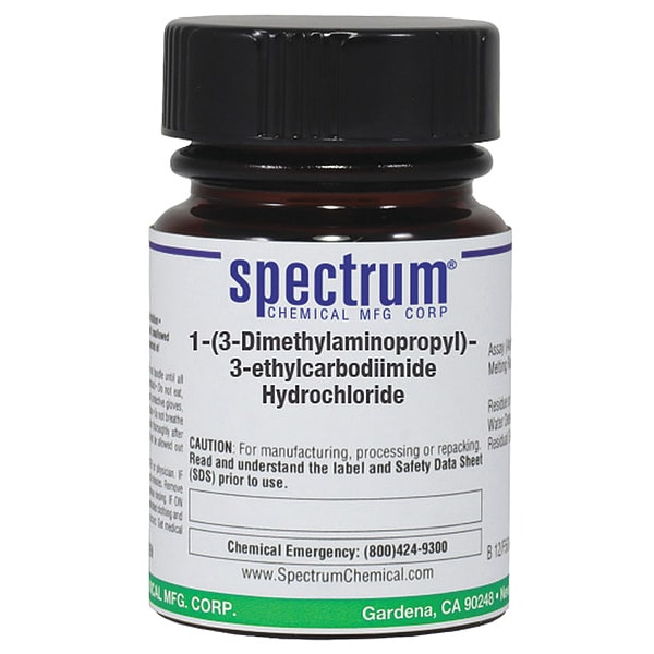 1-(3-Dimethylaminopropyl)-3-Ethylcarbodiimide Hydrochloride, Concentration 100 Percent, CAS Number 25952-53-8, Molecular Weight 191.71, Chemical Formula C8H17N3.HCl, Chemical Container Material Amber Glass, Chemical Container Type Bottle, Chemical Grade Reagent, Chemical Container Size 5 g, Chemical Family Type Acids, Shelf Life 24 mo