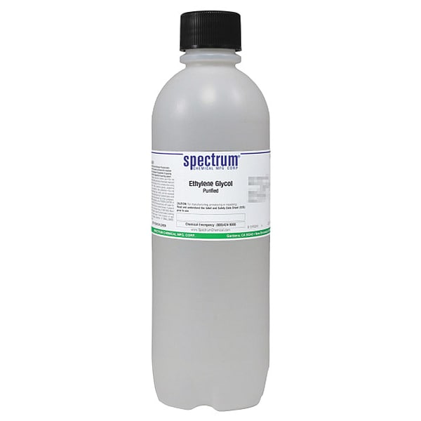 Ethylene Glycol, Concentration Not Applicable, CAS Number 107-21-1, Molecular Weight 62.07, Chemical Formula C2H6O2, Chemical Container Material Plastic, Chemical Container Type Bottle, Chemical Grade Lab, Chemical Container Size 1 L, Chemical Family Type Solvent, Shelf Life 24 mo, Shipping Restrictions Chemical Not Regulated For Transport, Standards Not Applicable, Special Information Not Applicable