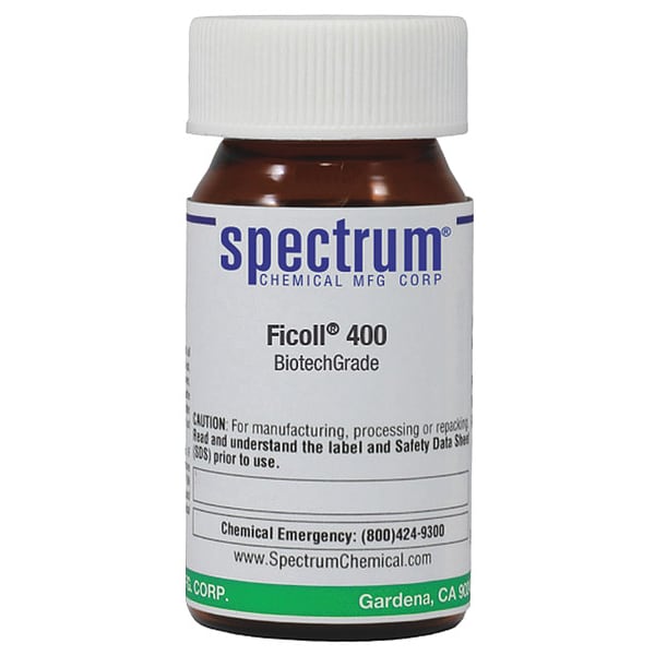 Ficoll 400, Biotech Grade, CAS Number 26873-85-8, Chemical Container Material Amber Glass, Chemical Container Type Bottle, Chemical Grade Purified, Chemical Container Size 5 g, Chemical Family Type Analytical Reagents, Shelf Life 24 mo, Shipping Restrictions Chemical Not Regulated For Transport