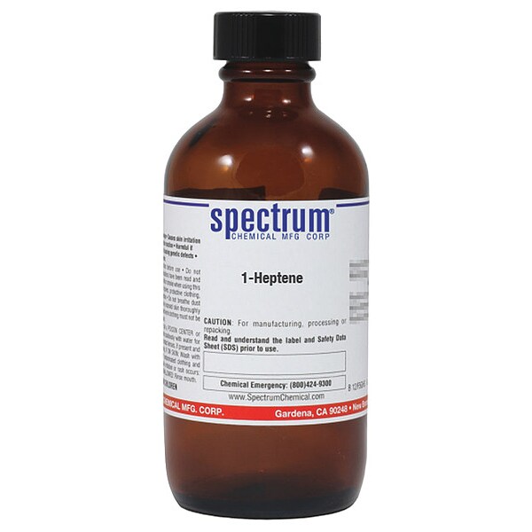 1-Heptene, Concentration 100 Percent, CAS Number 592-76-7, Molecular Weight 98.19, Chemical Formula C7H14, Chemical Container Material Amber Glass, Chemical Container Type Bottle, Chemical Grade Reagent, Chemical Container Size 100 mL, Shelf Life 24 mo, Shipping Restrictions UN2278, N-Heptene, 3, PG II