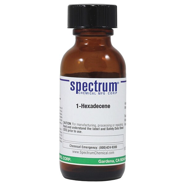 1-Hexadecene, Concentration 100 Percent, CAS Number 629-73-2, Molecular Weight 224.43, Chemical Formula C16H32, Chemical Container Material Amber Glass, Chemical Container Type Bottle, Chemical Grade Reagent, Chemical Container Size 25 mL, Shelf Life 24 mo