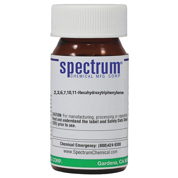 2,3,6,7,10,11-Hexahydroxytriphenylene, 95+ Percent, Concentration 100 Percent, CAS Number 4877-80-9, Chemical Container Material Amber Glass, Chemical Container Type Bottle, Chemical Grade Reagent, Chemical Container Size 5 g, Shelf Life 24 mo