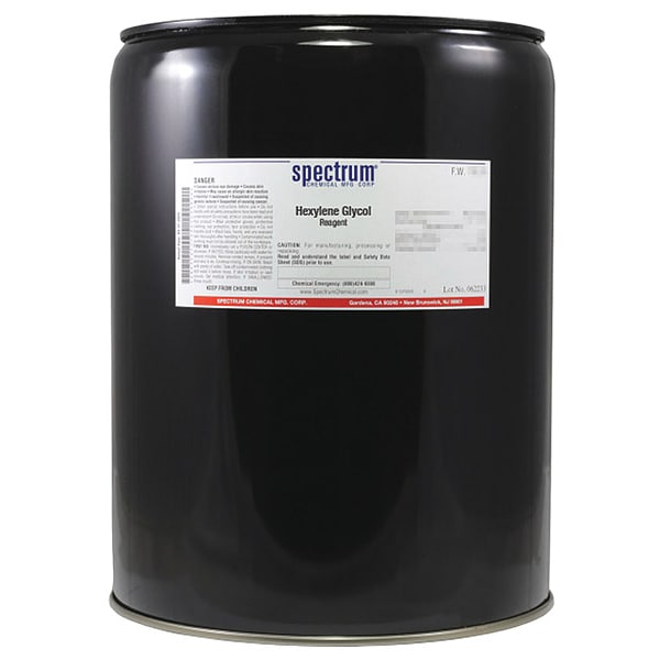 Hexylene Glycol, CAS Number 107-41-5, Molecular Weight 118.18, Chemical Formula C6H14O2, Chemical Container Material Metal, Chemical Container Type Drum, Chemical Grade Reagent, Chemical Container Size 20 L, Shelf Life 24 mo