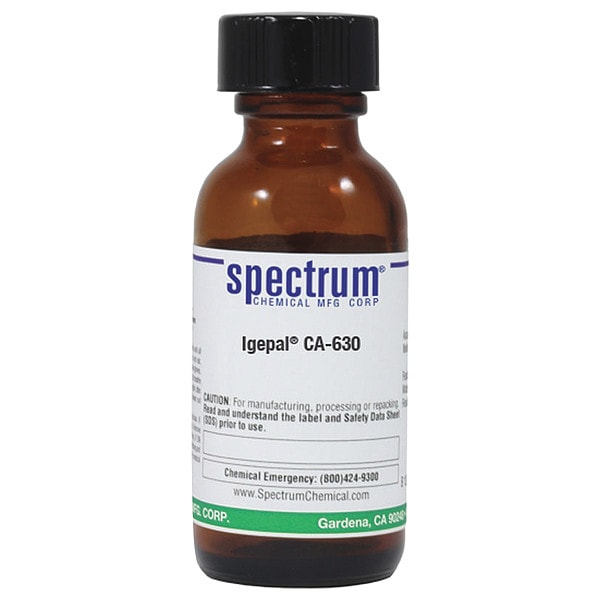Igepal(R) CA-630, CAS Number 9002-93-1, Molecular Weight F.W. 294.43, Chemical Formula C18H30O3, Chemical Container Material Amber Glass, Chemical Container Type Bottle, Chemical Grade Lab, Chemical Container Size 25 mL, Chemical Family Type Analytical Reagents, Shelf Life 24 mo