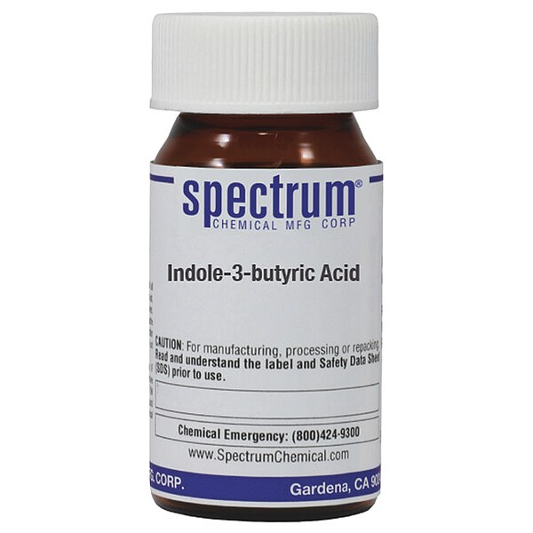 Indole-3-Butyric Acid, Concentration Not Applicable, CAS Number 133-32-4, Molecular Weight 203.24, Chemical Formula C12H13NO2, Chemical Container Material Amber Glass, Chemical Container Type Bottle, Chemical Grade Lab, Chemical Container Size 5 g, Chemical Family Type Acid, Shelf Life 24 mo, Shipping Restrictions UN2811, Toxic Solid, Organic, n.o.s. (Indole-3-Butyric Acid), 6.1, PG III, Standards Not Applicable, Special Information Not Applicable