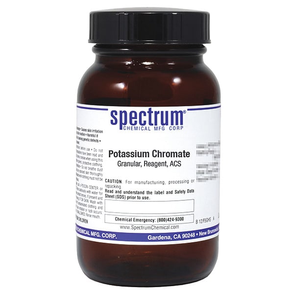 Potassium Chromate, Concentration Not Applicable, CAS Number 7789-00-6, Molecular Weight 194.19, Chemical Formula K2CrO4, Chemical Container Material Amber Glass, Chemical Container Type Bottle, Chemical Grade ACS, Chemical Container Size 125 g, Chemical Family Type Reagent, Shelf Life 24 mo, Shipping Restrictions UN3288, Toxic Solid, Inorganic, n.o.s. (Potassium Chromate), 6.1, PG III, Standards Not Applicable, Special Information Not Applicable