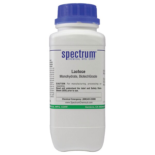 Lactose - Monohydrate, Concentration Not Applicable, CAS Number 64044-51-5, Molecular Weight 342.3, Chemical Formula C12H22O11�H2O, Chemical Container Material Plastic, Chemical Container Type Bottle, Chemical Grade Lab, Chemical Container Size 500 g, Chemical Family Type Reagent, Shelf Life 24 mo, Shipping Restrictions Chemical Not Regulated For Transport, Standards Not Applicable, Special Information Not Applicable