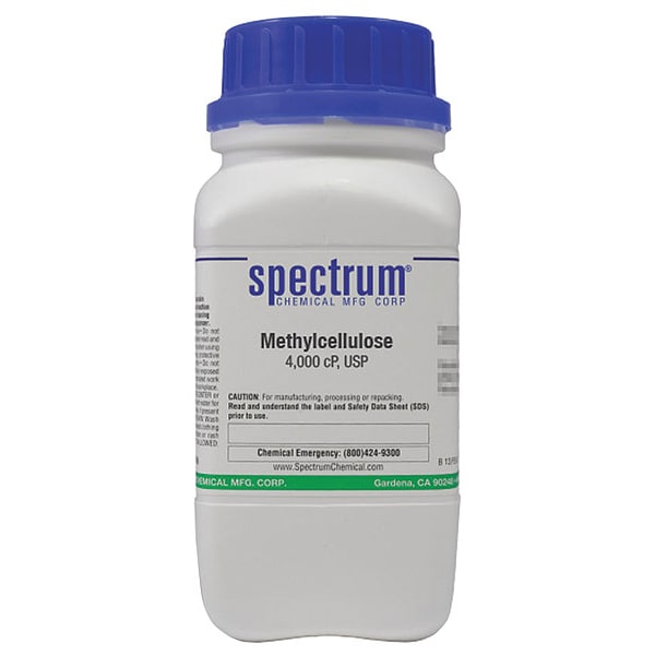 Methylcellulose - 4000 cP, Concentration Not Applicable, CAS Number 9004-67-5, Chemical Formula C6H7O2(OH)x(OCH3)y, Chemical Container Material Plastic, Chemical Container Type Bottle, Chemical Grade USP, Chemical Container Size 100 g, Chemical Family Type Reagent, Shelf Life 36 mo, Shipping Restrictions Chemical Not Regulated For Transport, Standards Not Applicable, Special Information Not Applicable