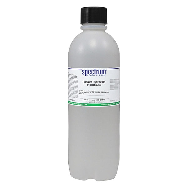 Sodium Hydroxide, Concentration 0.1 N, CAS Number 1310-73-2, 7732-18-5, Molecular Weight 40, Chemical Formula NaOH, APHA APHA, Chemical Container Material Plastic, Chemical Container Type Bottle, Chemical Grade Lab, Chemical Container Size 1 L, Chemical Family Type Solution, Shelf Life 24 mo, Shipping Restrictions Chemical Not Regulated For Transport, Standards Not Applicable, Special Information Not Applicable