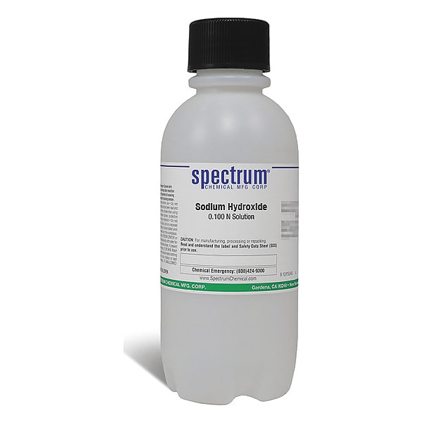 Sodium Hydroxide, Concentration 1 N, CAS Number 1310-73-2, 7732-18-5, Molecular Weight 40, Chemical Formula NaOH, APHA APHA, Chemical Container Material Plastic, Chemical Container Type Bottle, Chemical Grade Lab, Chemical Container Size 500 mL, Chemical Family Type Solution, Shelf Life 24 mo, Shipping Restrictions Chemical Not Regulated For Transport, Standards Not Applicable, Special Information Not Applicable