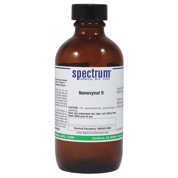 Nonoxynol 9, CAS Number 26571-11-9, Molecular Weight F.W. 616.83, Chemical Formula C33H60O10, Chemical Container Material Amber Glass, Chemical Container Type Bottle, Chemical Grade Lab, Chemical Container Size 100 mL, Chemical Family Type Analytical Reagents, Shelf Life 24 mo
