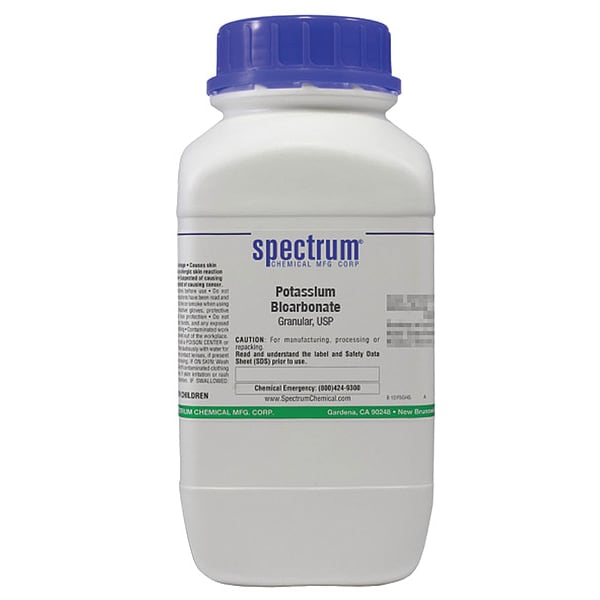 Potassium Bicarbonate, Granular, USP, CAS Number 298-14-6, Molecular Weight 100.12, Chemical Formula KHCO3, Chemical Container Material Plastic, Chemical Container Type Bottle, Chemical Grade USP, Chemical Container Size 2.5 kg, Chemical Family Type Analytical Reagents, Shelf Life 24 mo, Shipping Restrictions Chemical Not Regulated For Transport