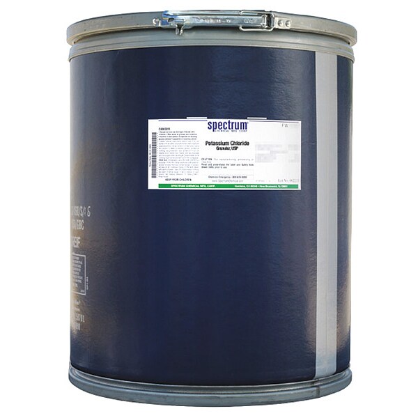 Potassium Chloride, Concentration Not Applicable, CAS Number 7447-40-7, Molecular Weight 74.55, Chemical Formula KCl, Chemical Container Material Fiberboard, Chemical Container Type Drum, Chemical Grade USP, Chemical Container Size 45 kg, Chemical Family Type Reagent, Shelf Life 60 mo, Shipping Restrictions Chemical Not Regulated For Transport, Standards Not Applicable, Special Information Not Applicable