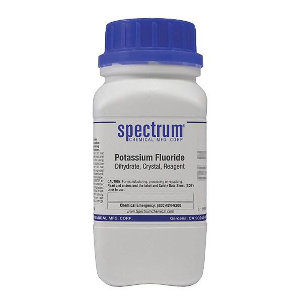 Potassium Fluoride - Dihydrate, Concentration Not Applicable, CAS Number 13455-21-5, Molecular Weight 94.13, Chemical Formula KF�2H2O, Chemical Container Material Plastic, Chemical Container Type Bottle, Chemical Grade Lab, Chemical Container Size 500 g, Chemical Family Type Reagent, Shelf Life 24 mo, Shipping Restrictions UN1812, Potassium Fluoride, Solid, 6.1, PG III, Standards Not Applicable, Special Information Not Applicable