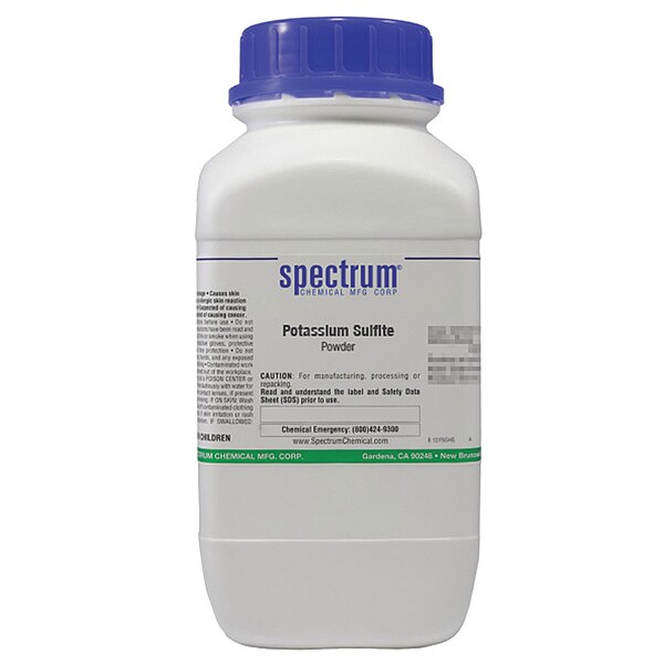 Potassium Sulfite, Powder, CAS Number 10117-38-1, Molecular Weight F.W. 158.24, Chemical Formula K2O3S, Chemical Container Material Plastic, Chemical Container Type Bottle, Chemical Grade Lab, Chemical Container Size 2.5 kg, Chemical Family Type Analytical Reagents, Shelf Life 24 mo, Special Information Used in photographic developers. THERAP CAT: Cathartic, diuretic.