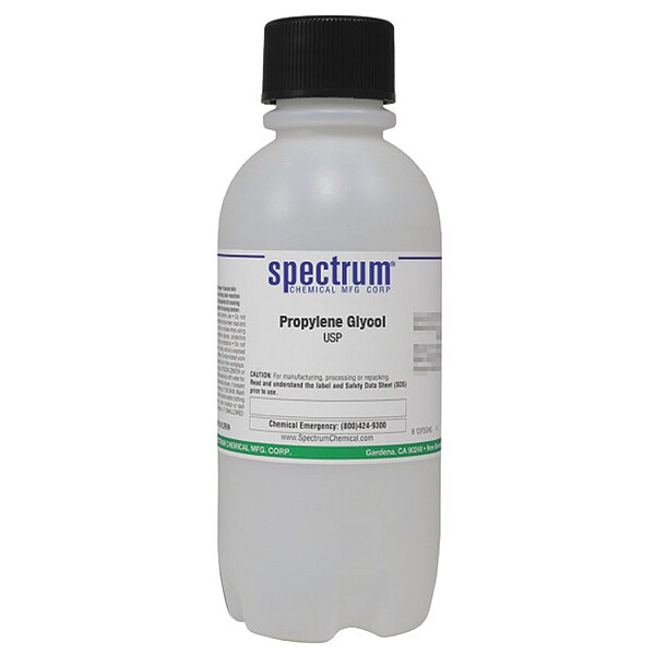 Propylene Glycol, Concentration Not Applicable, CAS Number 57-55-6, Molecular Weight 76.1, Chemical Formula C3H8O2, Chemical Container Material Plastic, Chemical Container Type Bottle, Chemical Grade USP, Chemical Container Size 500 mL, Chemical Family Type Reagent, Shelf Life 24 mo, Shipping Restrictions Chemical Not Regulated For Transport, Standards Not Applicable, Special Information Not Applicable