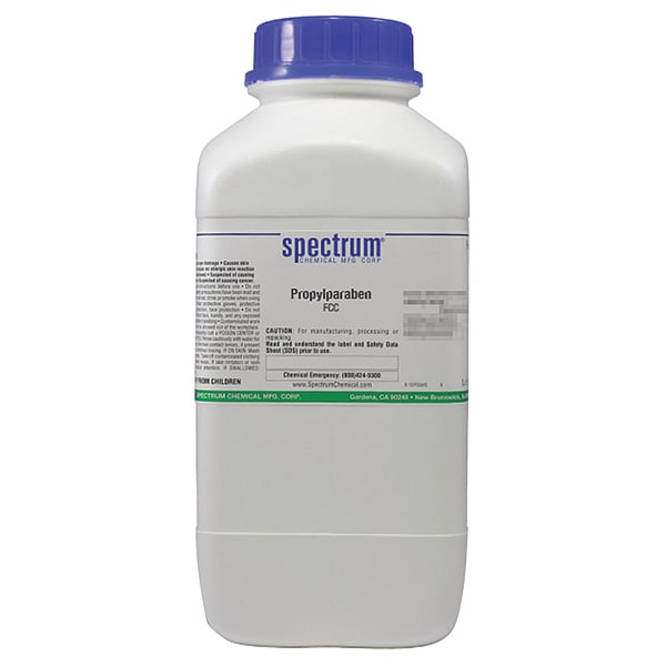 Propylparaben, FCC, CAS Number 94-13-3, Molecular Weight F.W. 180.20, Chemical Formula C10H12O3, Chemical Container Material Plastic, Chemical Container Type Drum, Chemical Grade FCC, Chemical Container Size 2.5 kg, Chemical Family Type Analytical Reagents, Shelf Life 24 mo