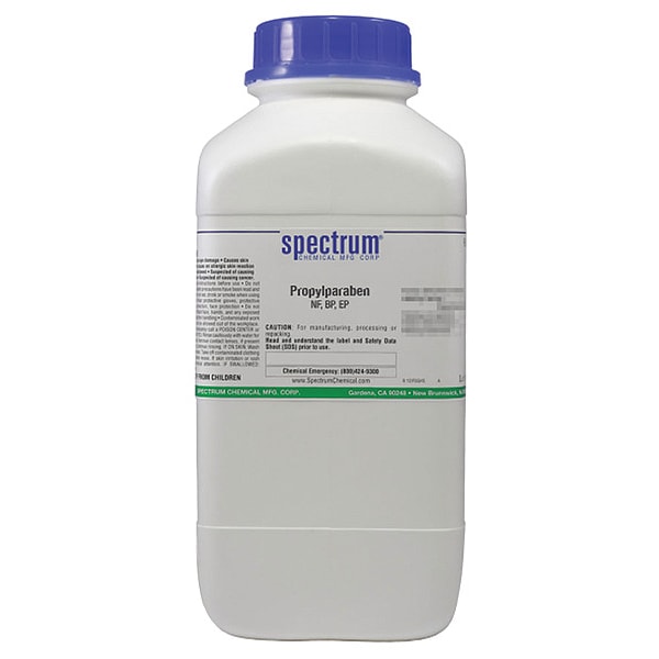 Propylparaben, NF, EP, BP, JP, CAS Number 94-13-3, Molecular Weight 180.2, Chemical Formula C10H12O3, Chemical Container Material Plastic, Chemical Container Type Drum, Chemical Grade NF, Chemical Container Size 2.5 kg, Chemical Family Type Analytical Reagents, Shelf Life 24 mo, Shipping Restrictions Chemical Not Regulated For Transport